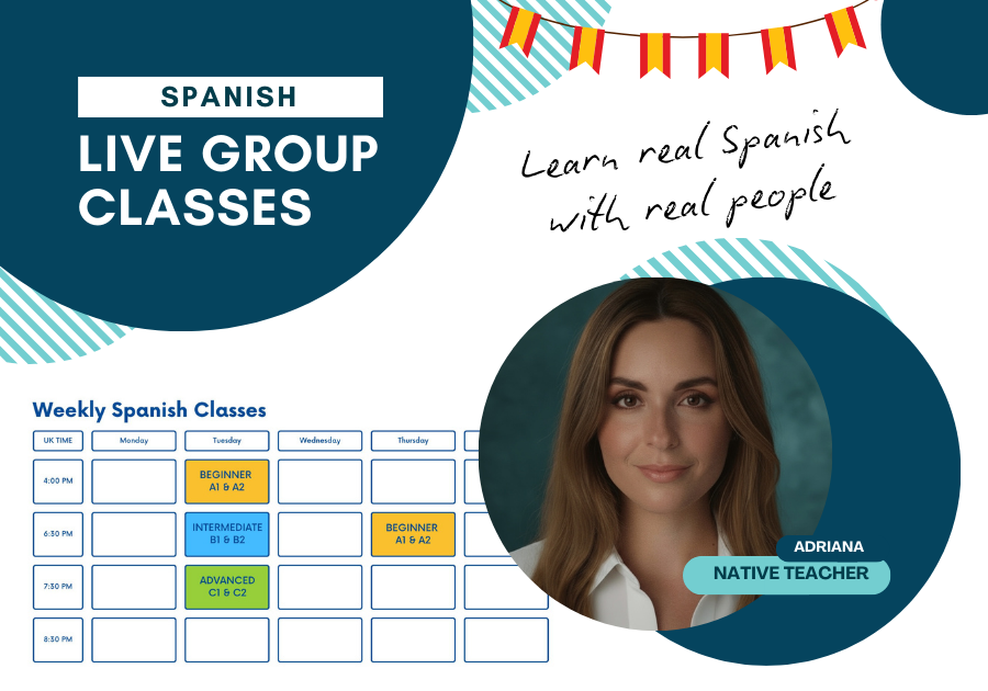 Learn Spanish online with a native teacher from Madrid, and other amazing students from around the world. LIVE group classes, access to recordings, quizzes, PDFs and much more!